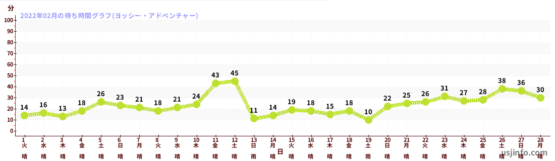 • ヨッシー・アドベンチャー$B$N(B2022年02月01日のの一日平均待ち時間