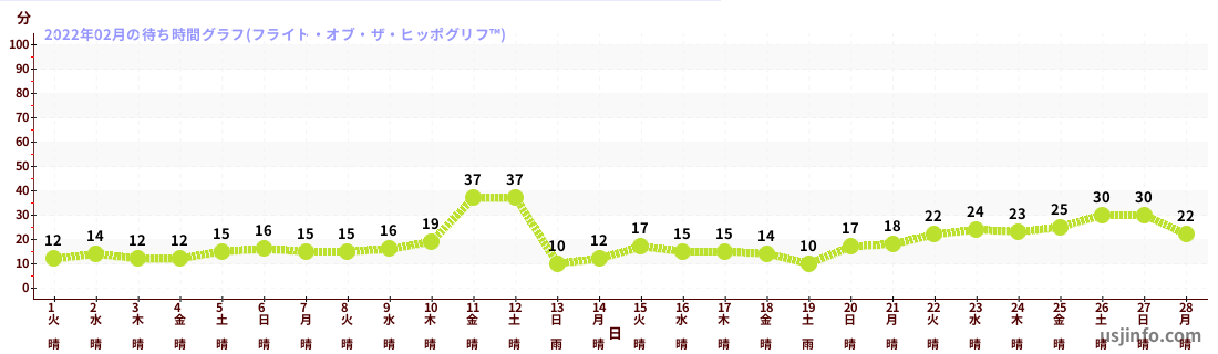 • フライト・オブ・ザ・ヒッポグリフ™$B$N(B2022年02月01日のの一日平均待ち時間