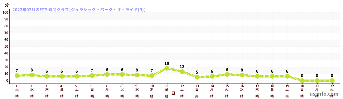 • ジョーズ(R)$B$N(B2022年02月01日のの一日平均待ち時間