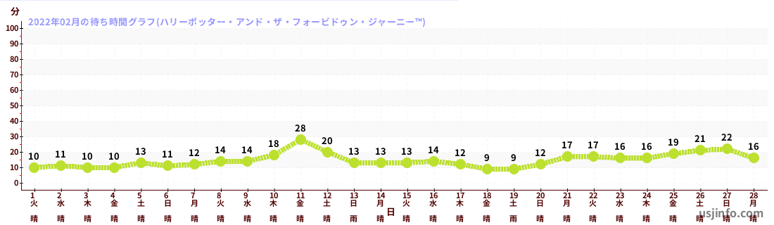 • ハリーポッター・アンド・ザ・フォービドゥン・ジャーニー™$B$N(B2022年02月01日のの一日平均待ち時間