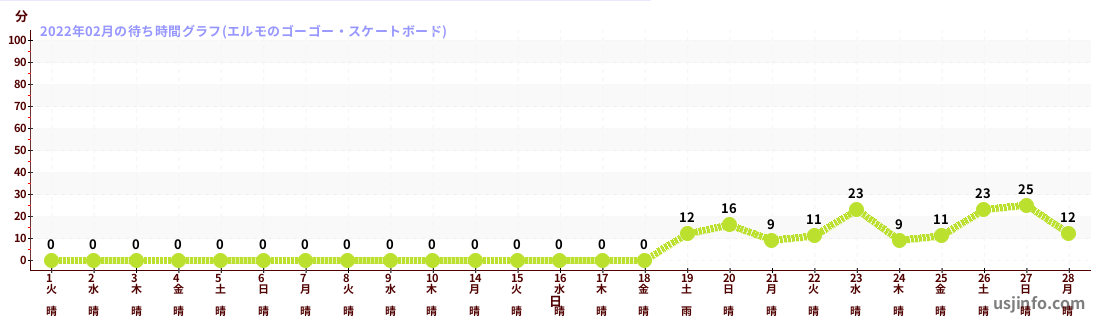 • エルモのゴーゴー・スケートボード$B$N(B2022年02月01日のの一日平均待ち時間
