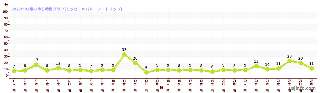 • モッピーのバルーン・トリップ$B$N(B2022年02月01日のの一日平均待ち時間