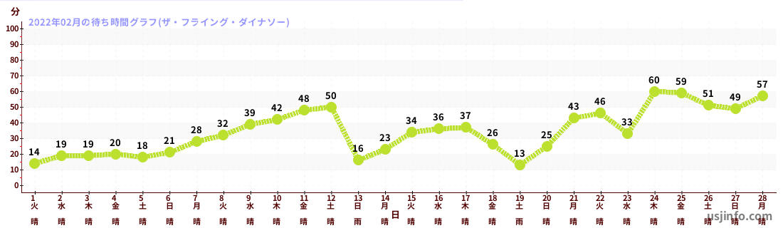 • ザ・フライング・ダイナソー$B$N(B2022年02月01日のの一日平均待ち時間