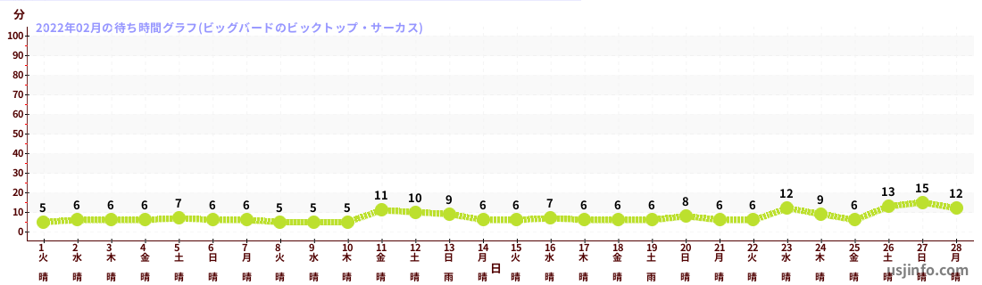 • ビッグバードのビックトップ・サーカス$B$N(B2022年02月01日のの一日平均待ち時間