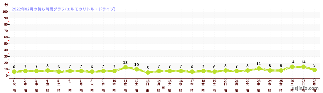 • エルモのリトル・ドライブ$B$N(B2022年02月01日のの一日平均待ち時間