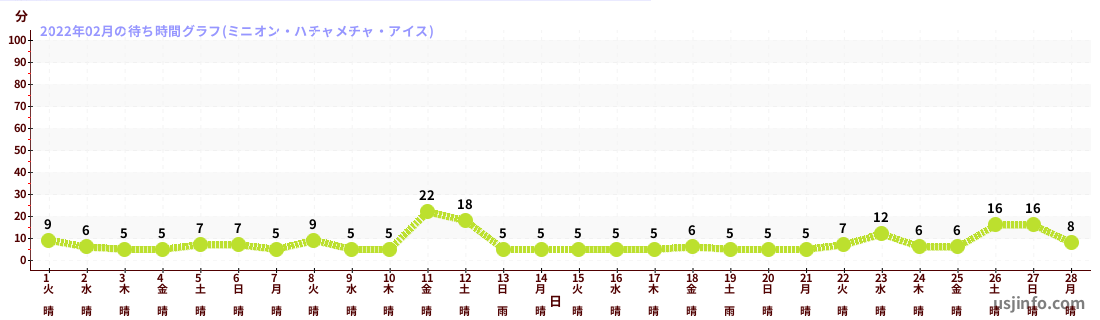 • ミニオン・ハチャメチャ・アイス$B$N(B2022年02月01日のの一日平均待ち時間