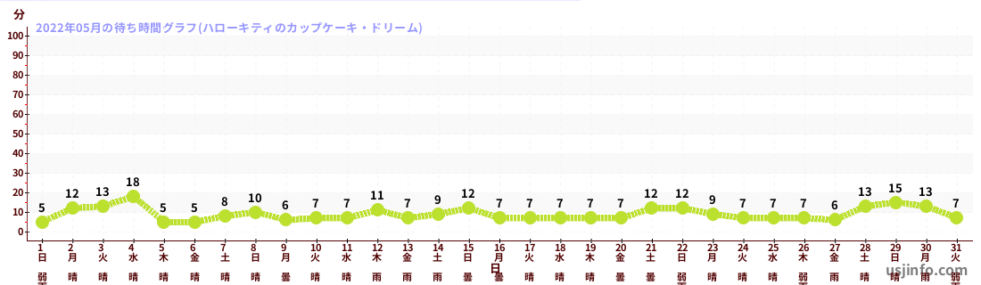 • ハローキティのカップケーキ・ドリーム$B$N(B2022年05月01日のの一日平均待ち時間