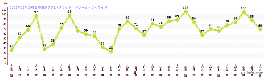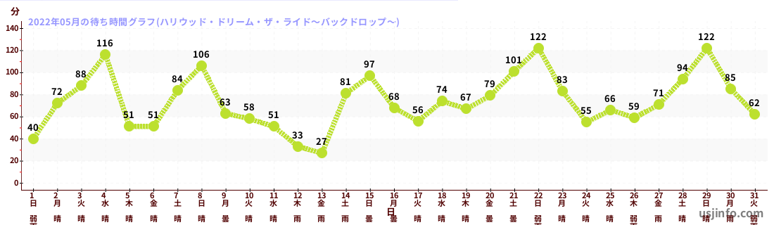 • ハリウッド・ドリーム・ザ・ライド$B$N(B2022年05月01日のの一日平均待ち時間