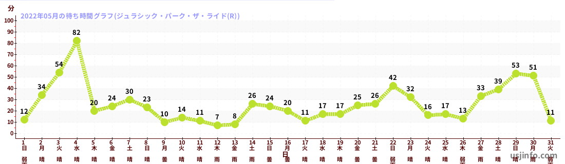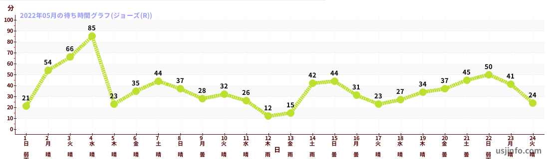 • ジョーズ(R)$B$N(B2022年05月01日のの一日平均待ち時間