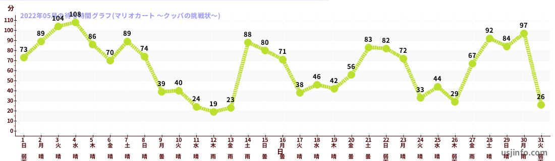 • マリオカート ~クッパの挑戦状~$B$N(B2022年05月01日のの一日平均待ち時間