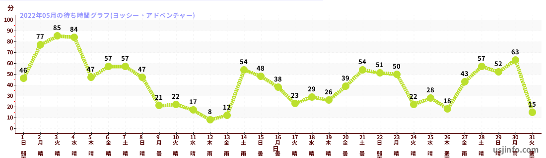 • ヨッシー・アドベンチャー$B$N(B2022年05月01日のの一日平均待ち時間