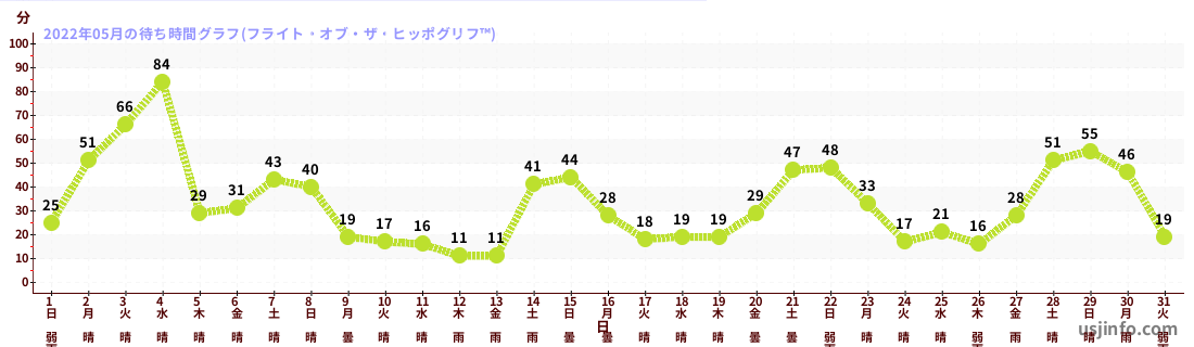 • フライト・オブ・ザ・ヒッポグリフ™$B$N(B2022年05月01日のの一日平均待ち時間