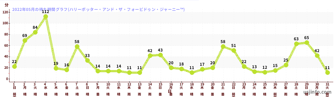 • ハリーポッター・アンド・ザ・フォービドゥン・ジャーニー™$B$N(B2022年05月01日のの一日平均待ち時間