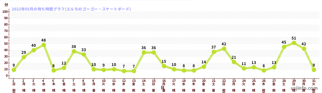 • エルモのゴーゴー・スケートボード$B$N(B2022年05月01日のの一日平均待ち時間