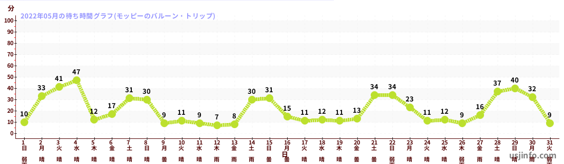 • モッピーのバルーン・トリップ$B$N(B2022年05月01日のの一日平均待ち時間