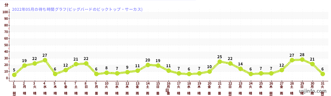• ビッグバードのビックトップ・サーカス$B$N(B2022年05月01日のの一日平均待ち時間