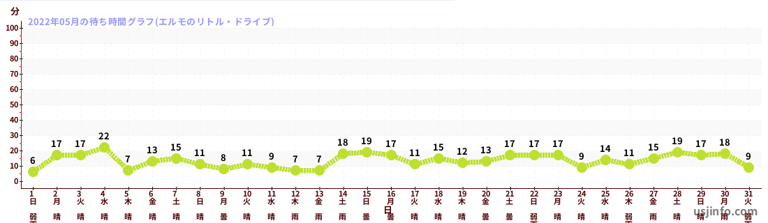 • エルモのリトル・ドライブ$B$N(B2022年05月01日のの一日平均待ち時間
