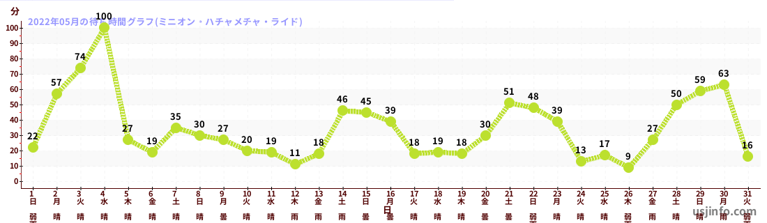 • ミニオン・ハチャメチャ・ライド$B$N(B2022年05月01日のの一日平均待ち時間