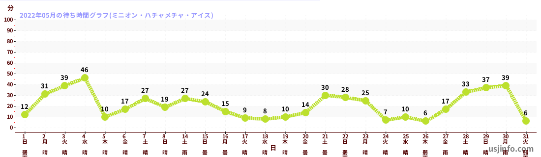 • ミニオン・ハチャメチャ・アイス$B$N(B2022年05月01日のの一日平均待ち時間