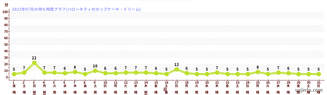 • ハローキティのカップケーキ・ドリーム$B$N(B2022年07月01日のの一日平均待ち時間