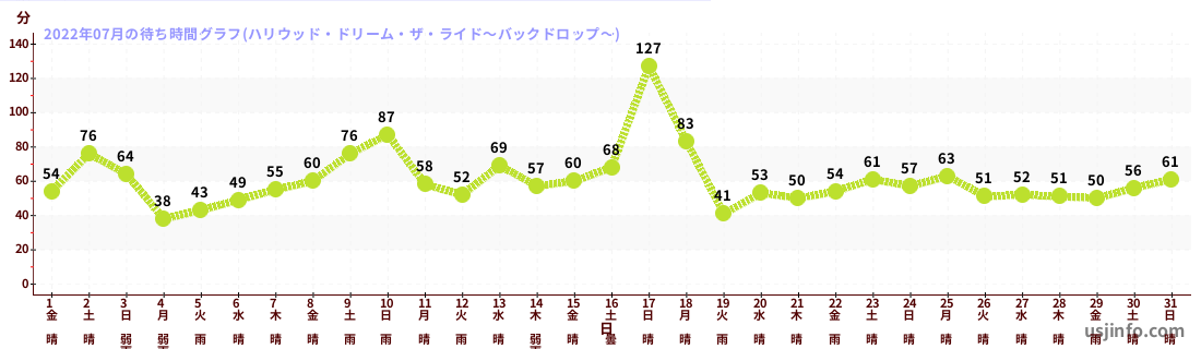 • ハリウッド・ドリーム・ザ・ライド〜バックドロップ〜$B$N(B2022年07月01日のの一日平均待ち時間