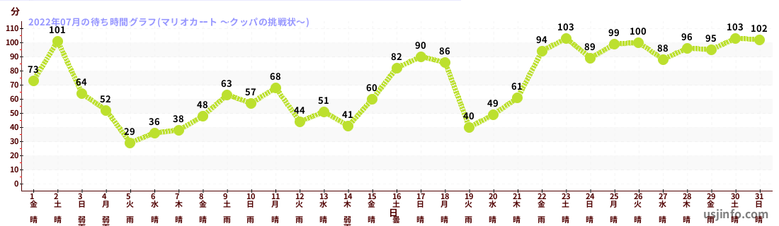 • マリオカート ~クッパの挑戦状~$B$N(B2022年07月01日のの一日平均待ち時間