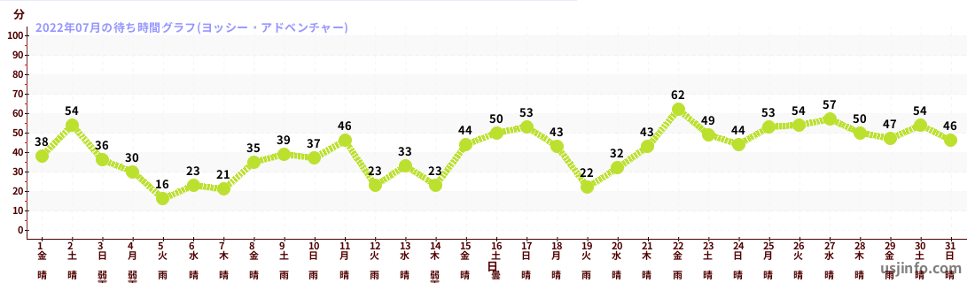 • ヨッシー・アドベンチャー$B$N(B2022年07月01日のの一日平均待ち時間