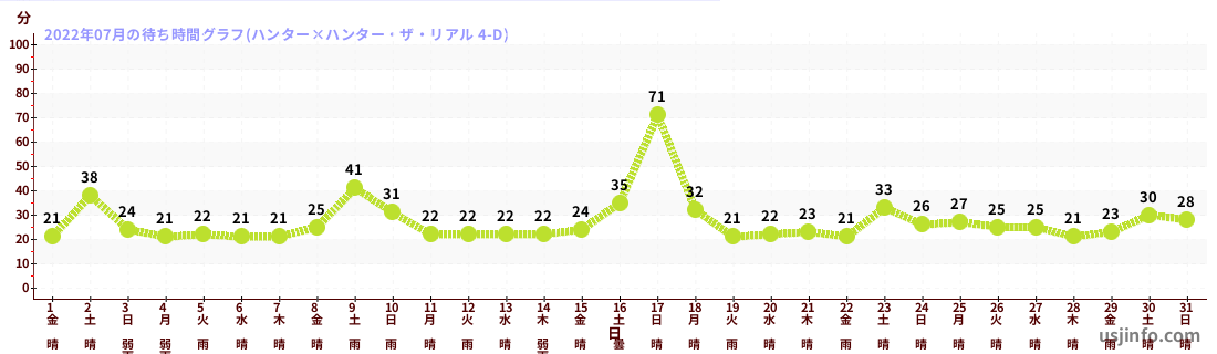 • ハンター×ハンター・ザ・リアル 4-D$B$N(B2022年07月01日のの一日平均待ち時間