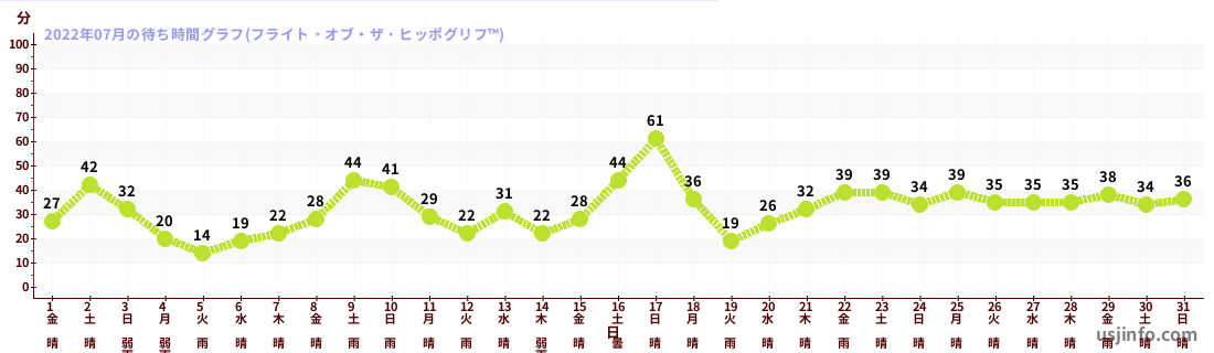 • フライト・オブ・ザ・ヒッポグリフ™$B$N(B2022年07月01日のの一日平均待ち時間