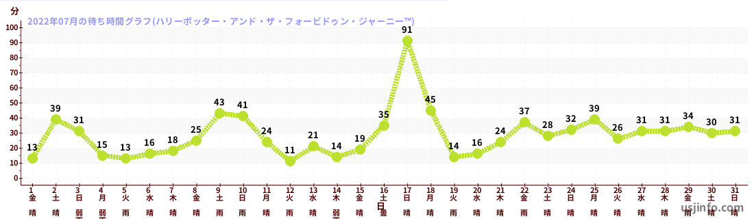• ハリーポッター・アンド・ザ・フォービドゥン・ジャーニー™$B$N(B2022年07月01日のの一日平均待ち時間