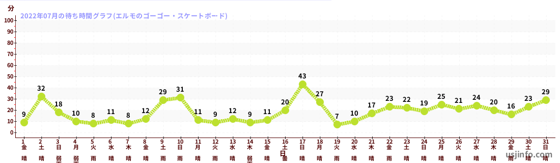 • エルモのゴーゴー・スケートボード$B$N(B2022年07月01日のの一日平均待ち時間