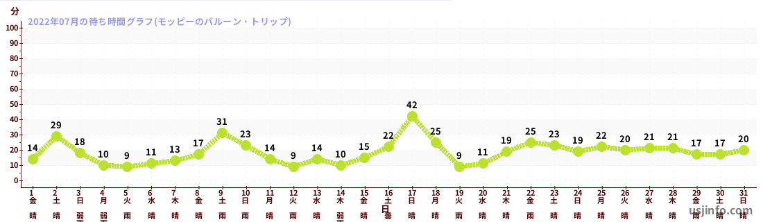 • モッピーのバルーン・トリップ$B$N(B2022年07月01日のの一日平均待ち時間