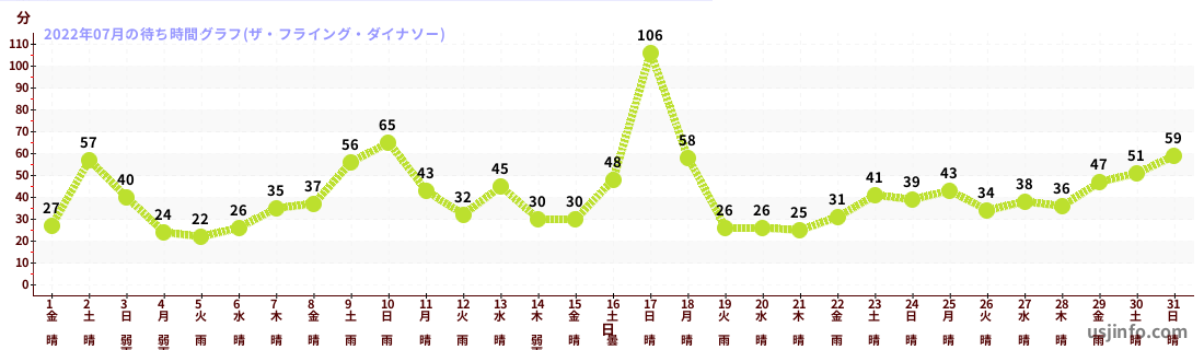 • ザ・フライング・ダイナソー$B$N(B2022年07月01日のの一日平均待ち時間