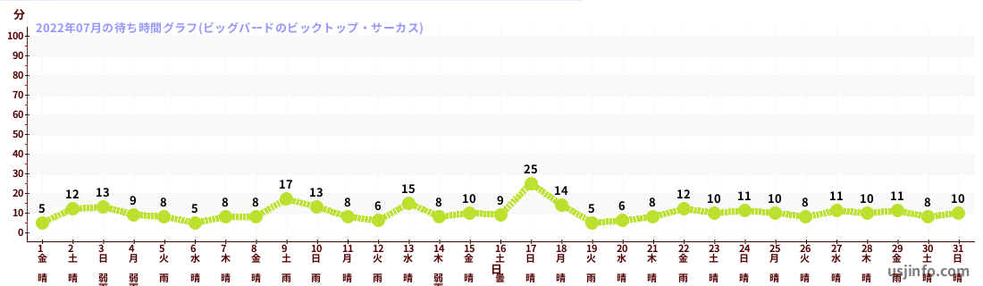 • ビッグバードのビックトップ・サーカス$B$N(B2022年07月01日のの一日平均待ち時間