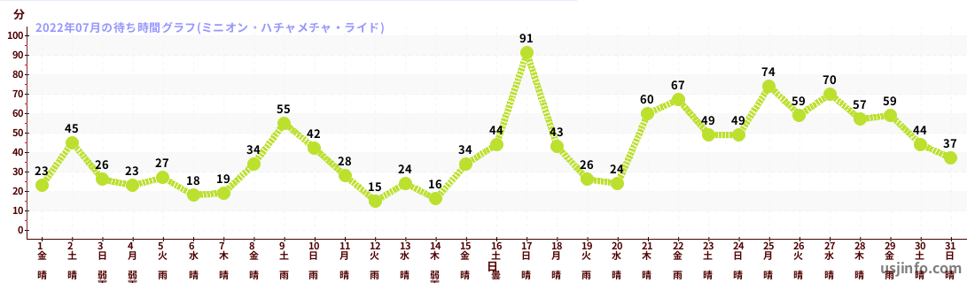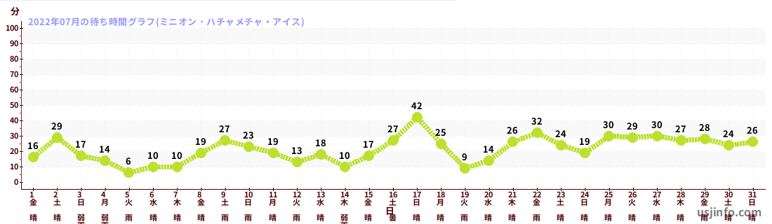• ミニオン・ハチャメチャ・ライド$B$N(B2022年07月01日のの一日平均待ち時間