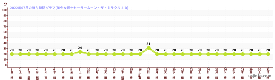 • 美少女戦士セーラームーン・ザ・ミラクル 4-D$B$N(B2022年07月01日のの一日平均待ち時間