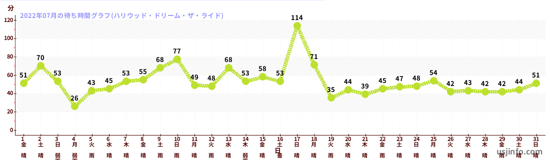 • ハリウッド・ドリーム・ザ・ライド$B$N(B2022年07月01日のの一日平均待ち時間