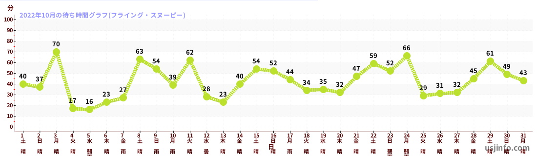 • フライング・スヌーピー$B$N(B2022年10月01日のの一日平均待ち時間
