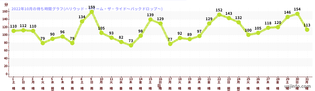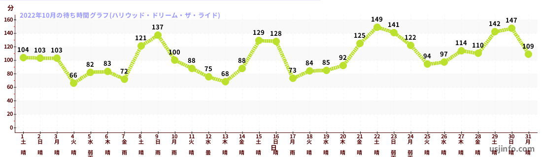 • ハリウッド・ドリーム・ザ・ライド$B$N(B2022年10月01日のの一日平均待ち時間