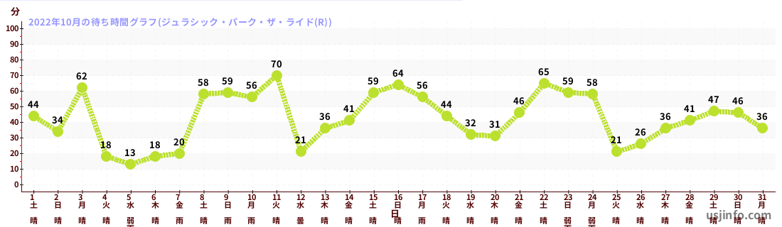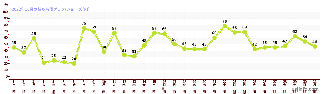 • ジョーズ(R)$B$N(B2022年10月01日のの一日平均待ち時間