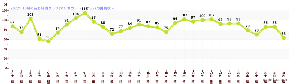 • マリオカート ~クッパの挑戦状~$B$N(B2022年10月01日のの一日平均待ち時間