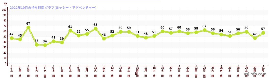 • ヨッシー・アドベンチャー$B$N(B2022年10月01日のの一日平均待ち時間