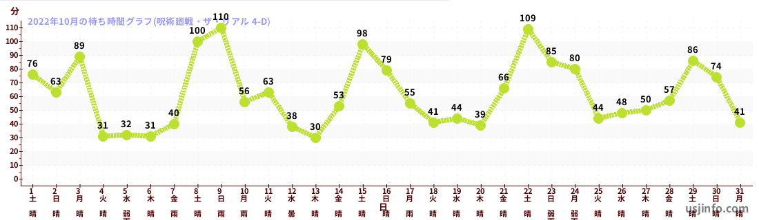 • 呪術廻戦・ザ・リアル 4-D$B$N(B2022年10月01日のの一日平均待ち時間