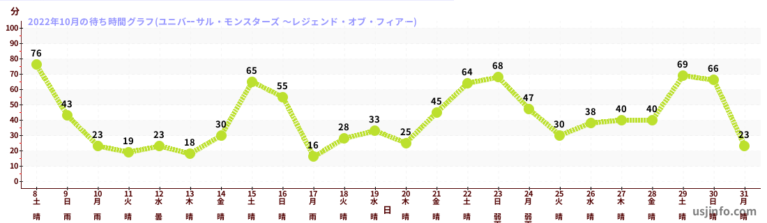 • ユニバーサル・モンスターズ ~レジェンド・オブ・フィアー$B$N(B2022年10月01日のの一日平均待ち時間