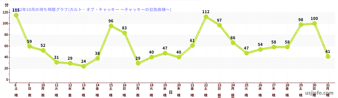 • カルト・オブ・チャッキー ~チャッキーの狂気病棟~$B$N(B2022年10月01日のの一日平均待ち時間