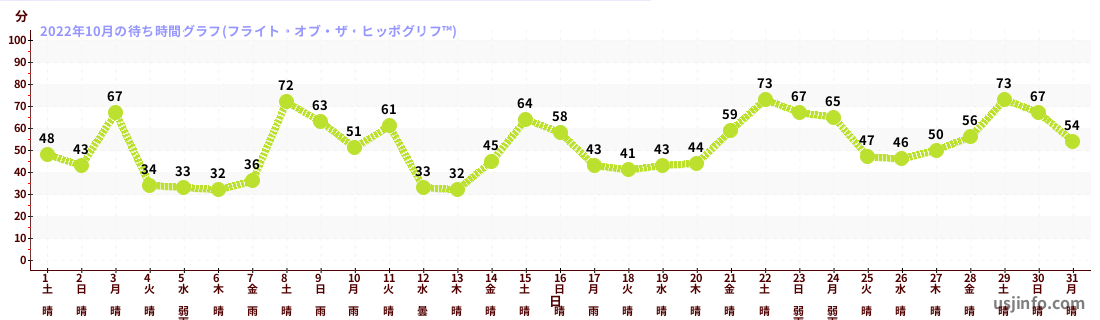 • フライト・オブ・ザ・ヒッポグリフ™$B$N(B2022年10月01日のの一日平均待ち時間