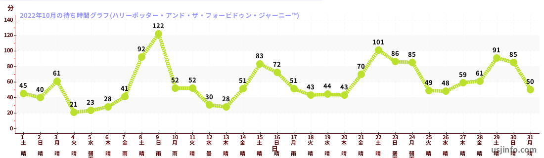 • ハリーポッター・アンド・ザ・フォービドゥン・ジャーニー™$B$N(B2022年10月01日のの一日平均待ち時間