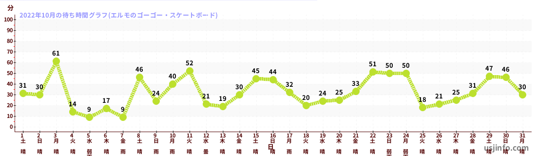 • エルモのゴーゴー・スケートボード$B$N(B2022年10月01日のの一日平均待ち時間