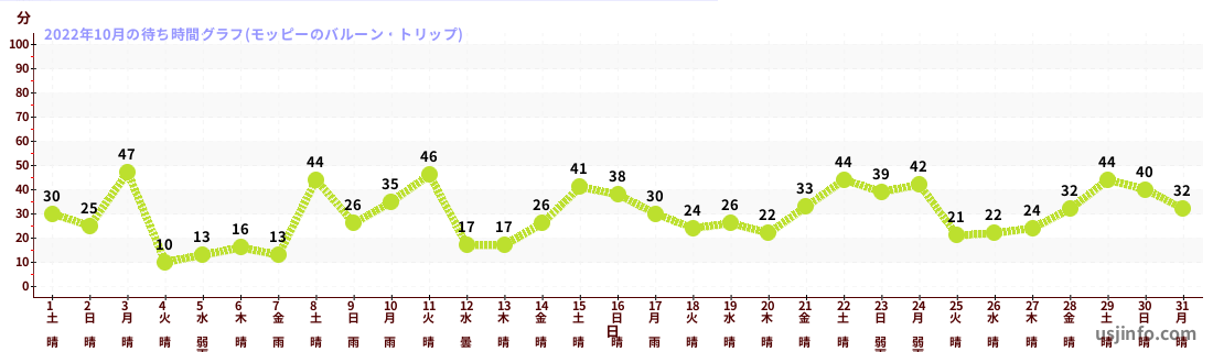 • モッピーのバルーン・トリップ$B$N(B2022年10月01日のの一日平均待ち時間