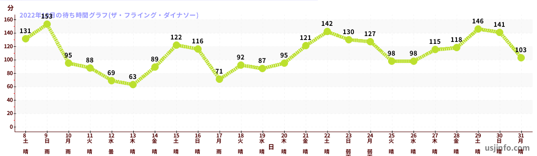 • ザ・フライング・ダイナソー$B$N(B2022年10月01日のの一日平均待ち時間
